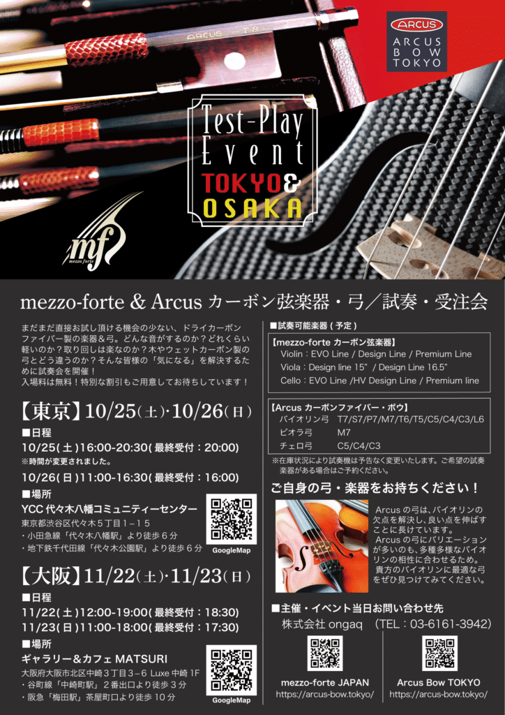 秋本番に東京・大阪にて試奏会を開催いたします!みなさまお誘い合わせの上ぜひご来場ください!